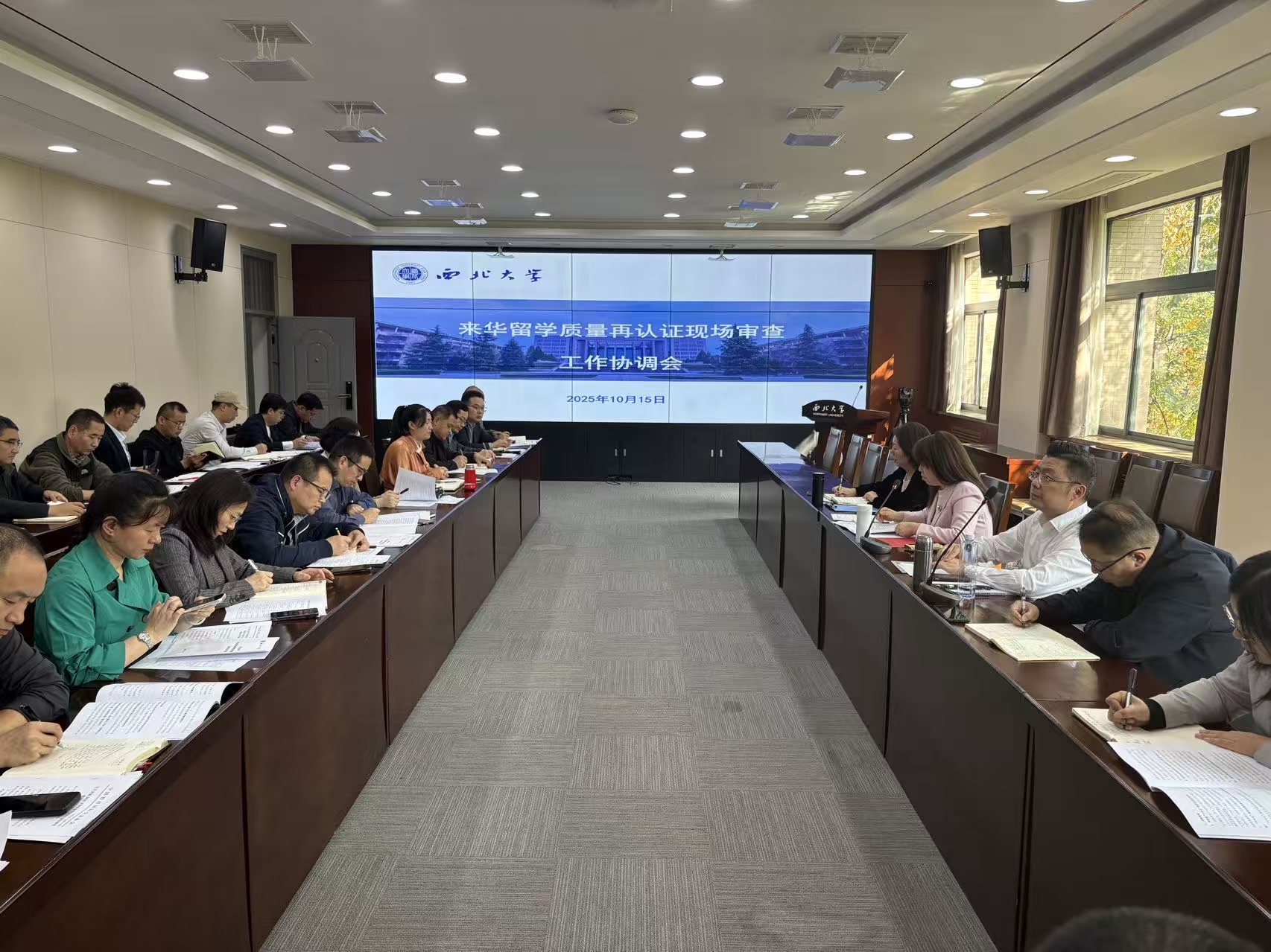 10月15日下午,我校来华留学质量再认证现场审查工作协调会在长安校区召开,进一步动员和部署迎接再认证现场审查工作,为高质量做好现场审查各项工作打下坚实基础。副校长范代娣出席会议并讲话,有关职能处室和留学生培养单位共40位负责人参加会议。 本次工作协调会由国际教育学院负责人主持。相关负责人从前期工作回顾、核心任务解读、认证关键环节、全员积极备战和特别注意事项等五个部分,汇报和安排了质量再认...